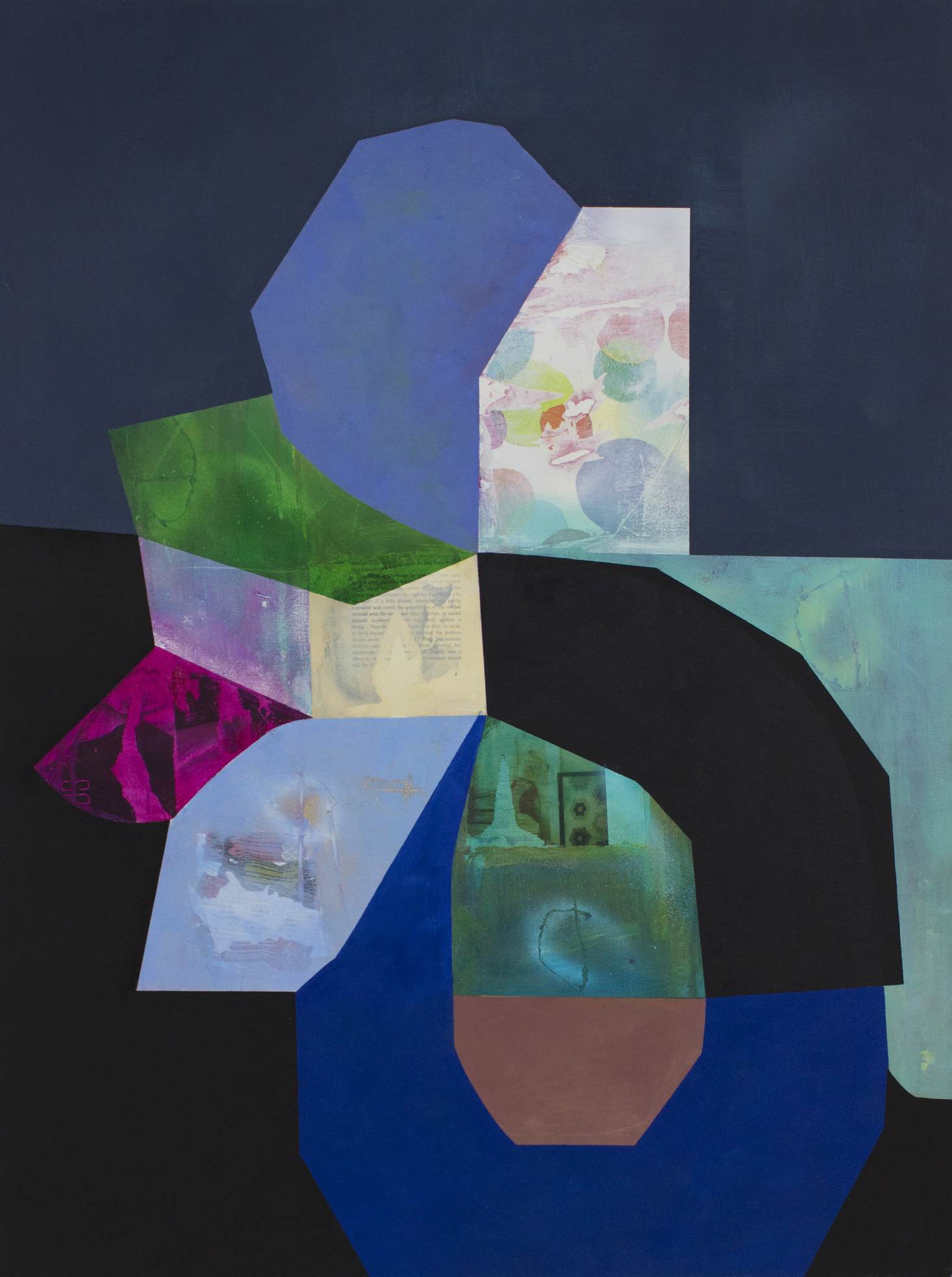 oil, acrylic, collage