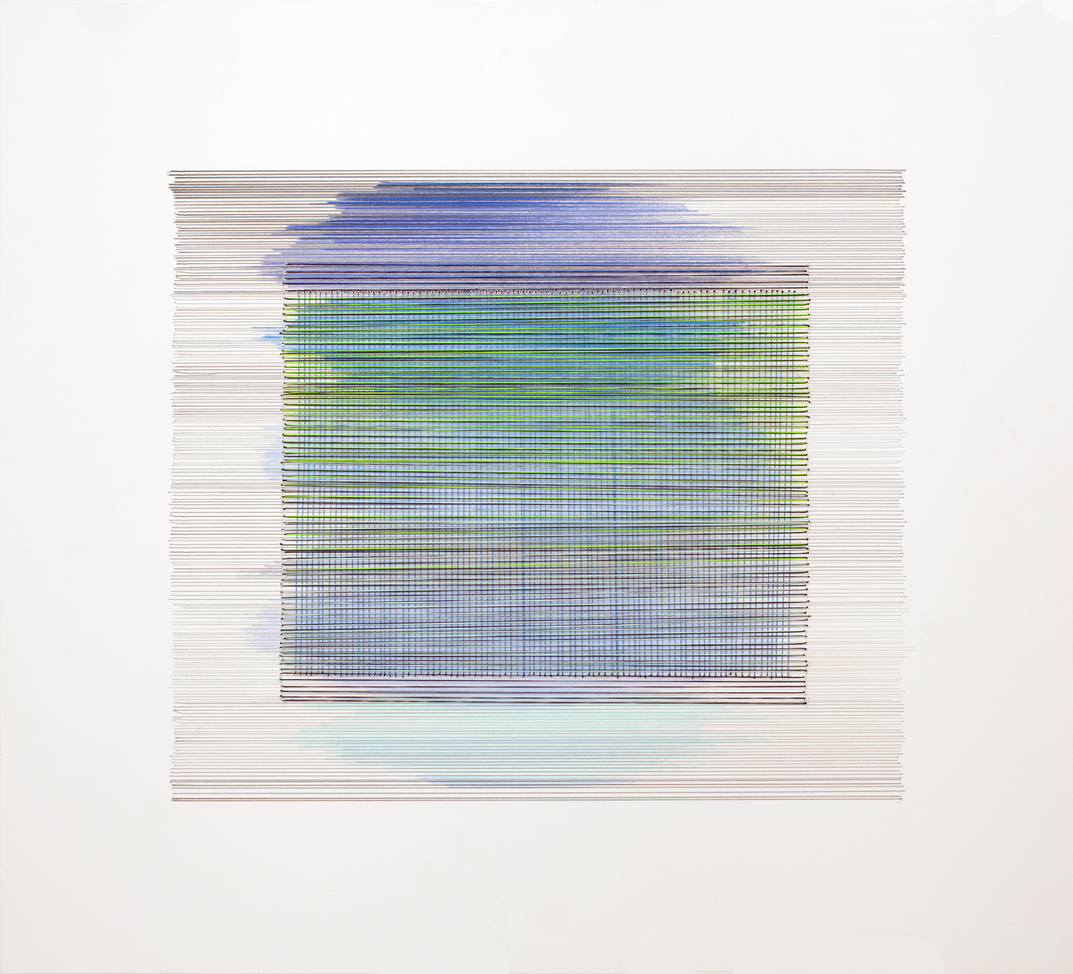 graphite, colored pencil, pastel, thread on paper