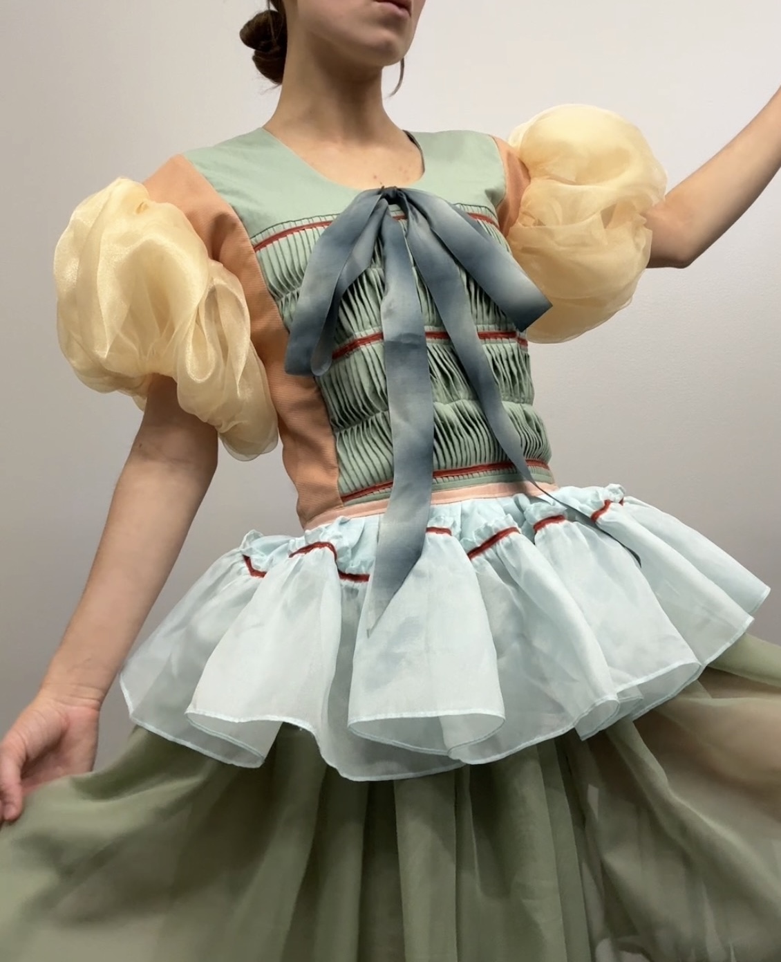 Top and skirt set - Hand pleated organza and cotton material